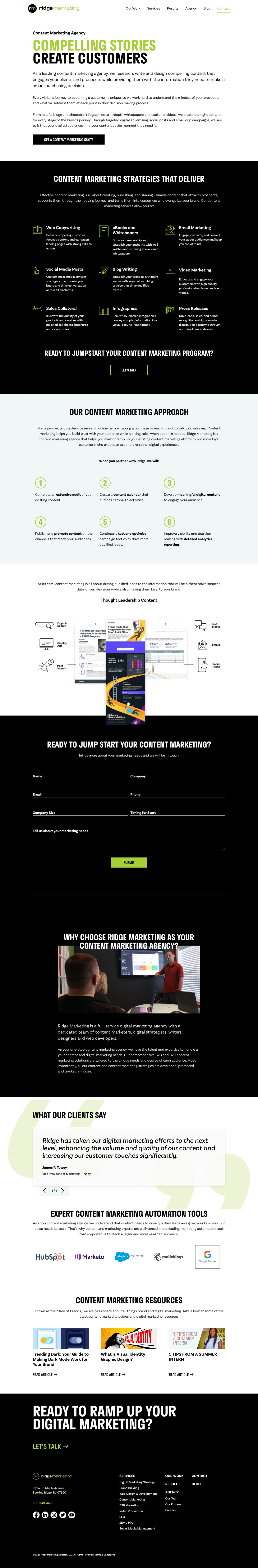 Ridge Marketing is an award-winning full service marketing agency based in Basking Ridge, NJ. I spear-headed this development and worked alongside talented designers and developers to build a total refresh of our company's website.